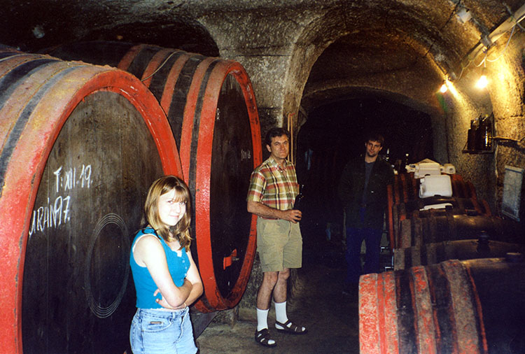 There were enormous barrels on one side of the cellar and the owner was