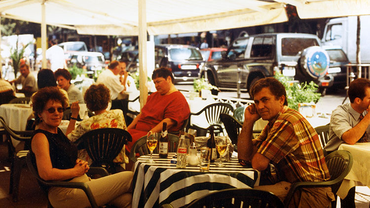Stopped at an outdoor restaurant and had beers, Rachel of course had