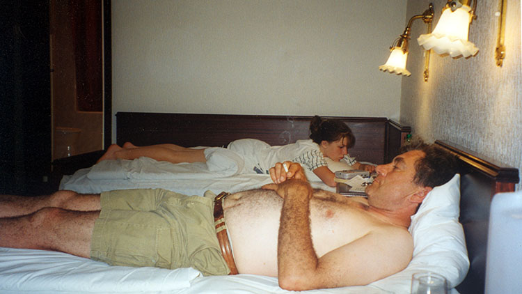 beer and coke on the patio. Then back to our room for some buck a liter wine. We