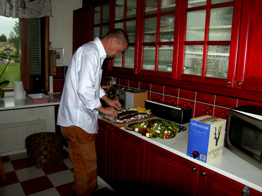 which he cut into thin slices. With the Finnish Rye bread and butter it tasted