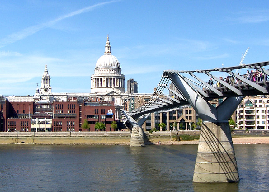 Rita wasn't even impressed by Pablo Picasso. I mean, "COME ON"! She kept saying, "WHAT THE HECK IS THAT SUPPOSED TO BE?". Being an expert on Picasso, I explain to her that it was a painting of a female. Unlike me, Rita is a real BUMPKIN. After about half an hour of admiring the thousands of masterpieces, we decided to leave. There is an enormous space for the entrance and exit from the museum. Being in the heart of London, I cannot even imagine how much this empty space is worth. But I suppose, given time, they will fill it up with more BS. To show how Avant-Garde we are, we decided that we will "RAVE" about the Tate Modern to all the relatives coming to visit us. Walked across the Millennium Bridge towards St. Paul's.