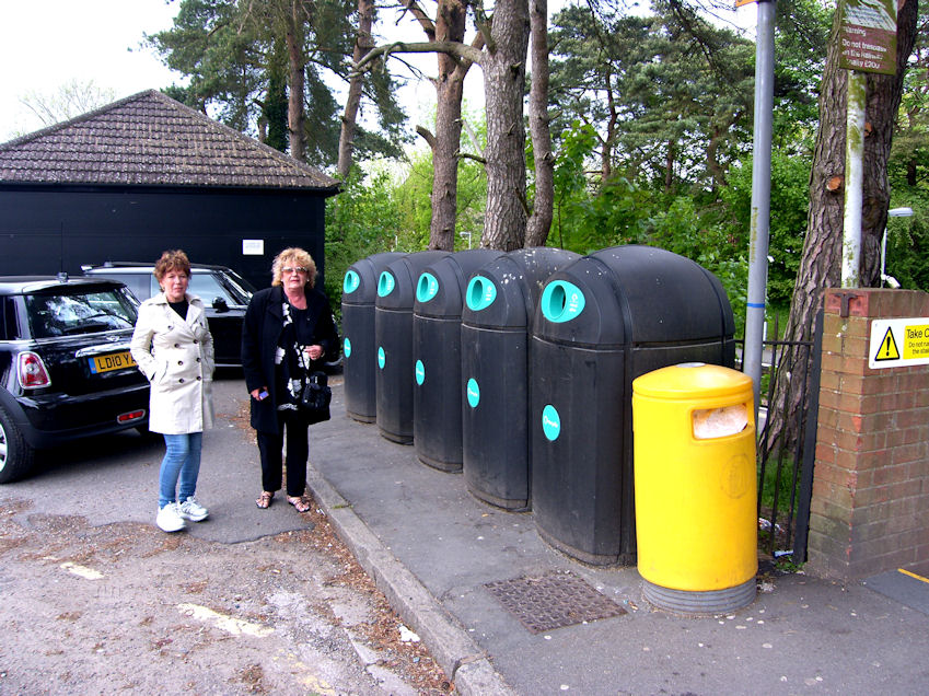 Rita showed Eija the recycling bins by the railway station.