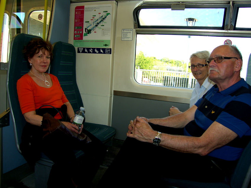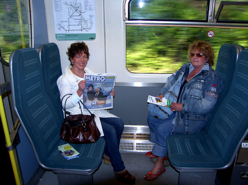Had a pint of beer and resumed our journey to Piccadilly. Kaj tried phoning Annika again when we arrived at Piccadilly, but couldn't get hold of her. We knew we would never find them in the crowd, if they were still there. Went on the underground back to London Bridge and hopped on the train a few seconds before it left. I asked Kaj to try the phone again and this time he managed to contact Annika. The ladies were on the same train two coaches ahead of us. Walked through the train and met up. It seems the ladies had a much more enjoyable time than we did. They seemed to have gone through some interesting areas and shops, including an area full of sex shops. I was wondering what they were carrying in their bags. It would have interested me a lot more going with them to see some kinky bloomers than the big boomers we saw at The Imperial War Museum with the guys.