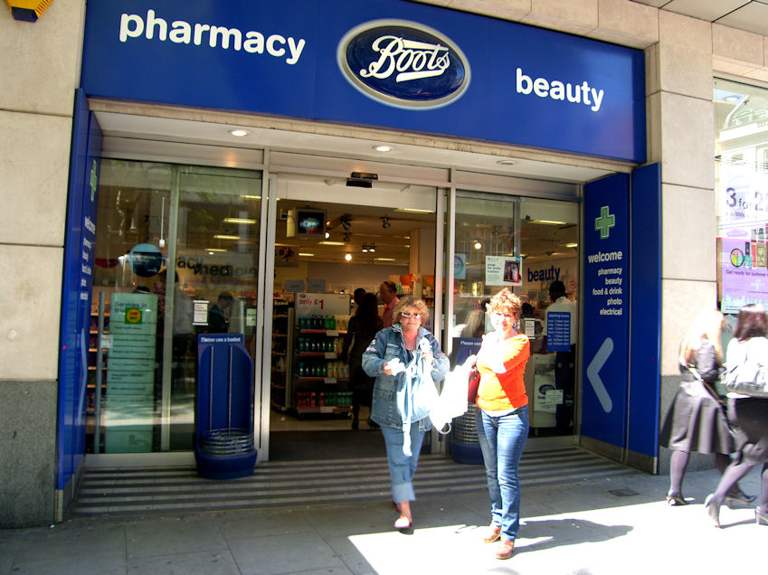 If you think two ladies walking into a beauty store would take twice as long as one, you need a refresher course in calculus. It seems it takes an eternity. Eventually they came out and I was told that that particular Boots didn't carry the item Rita needed. So we were off to the next Boot's, only delayed by every shoe store on the way.