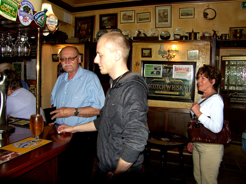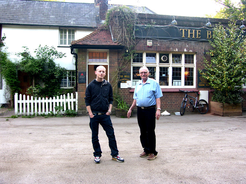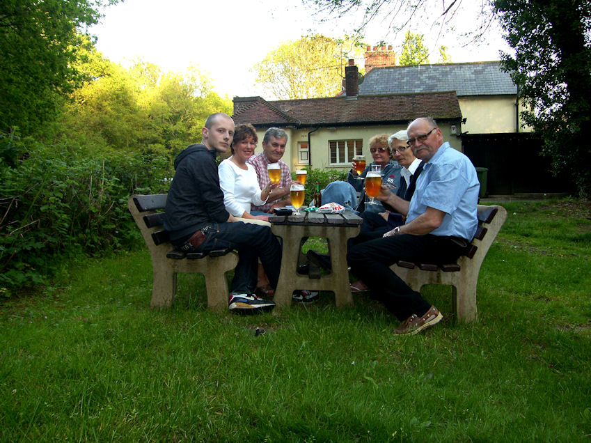We had a beer/wine ate dinner and then decided to walk to a local pub, "The Bell". Sebastian wasn't feeling well so he decided to stay home and have a nap. We walked to the train station where I showed Christian and Kaj how to purchase tickets from the vending machine. Came back up to the street and still had to wait for the ladies to catch up. I guess if you talk fast you can't walk fast. Took the foot path from the train station to The Bell. My favourite Pub in Tadworth.