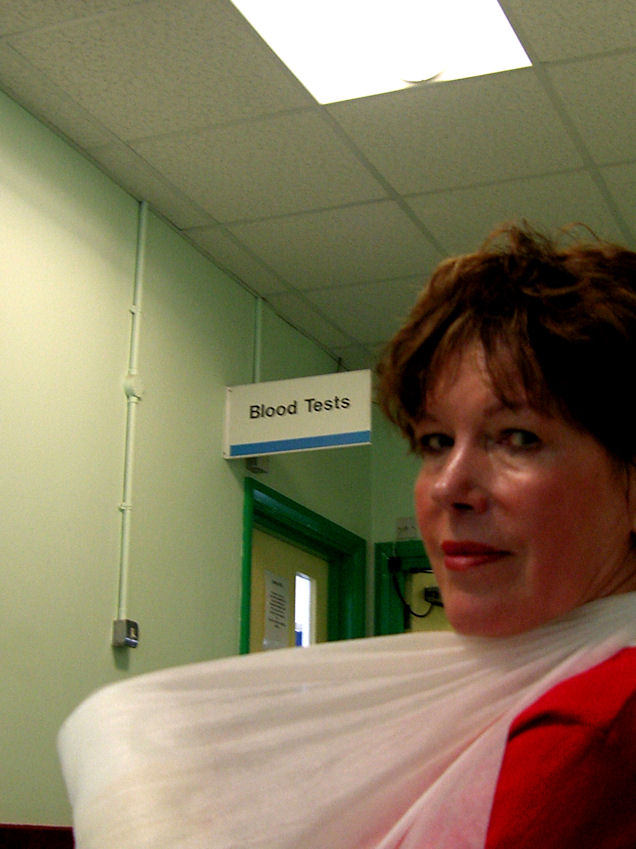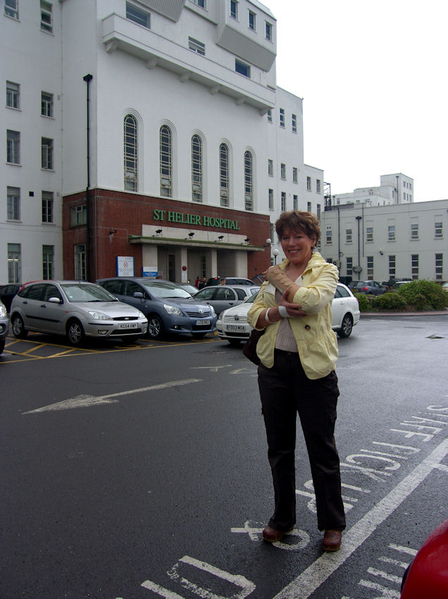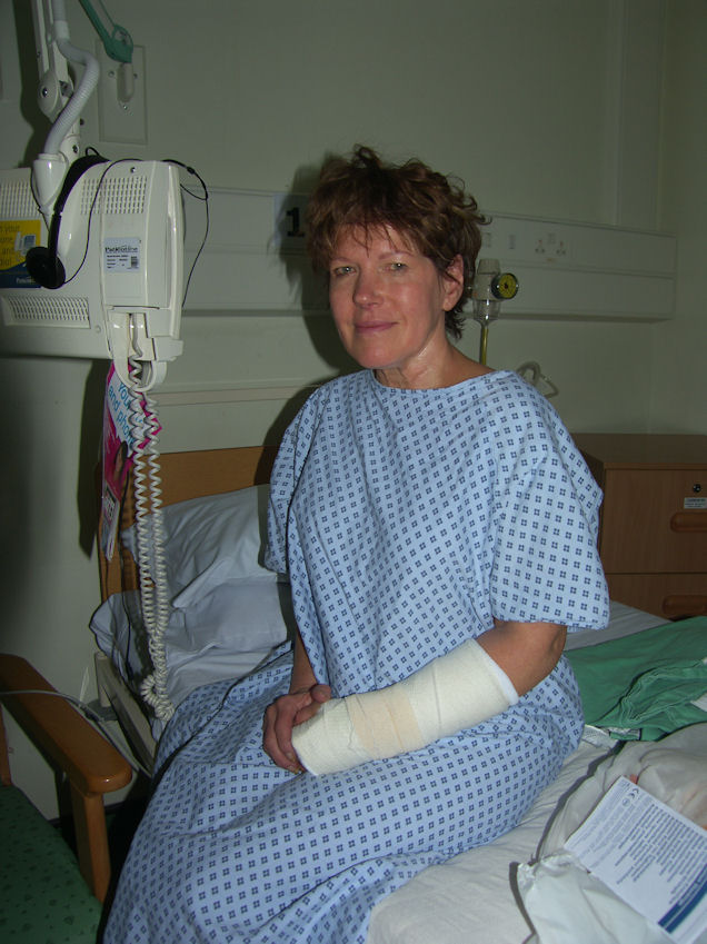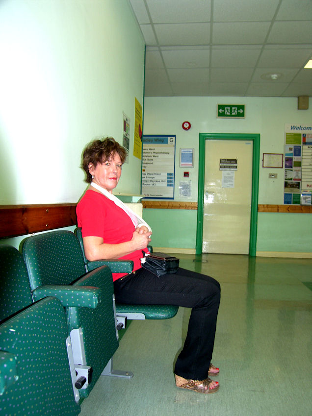 It is currently 26° in Tadworth, beautiful sunny day, not a cloud in the sky. What am I doing? I'm printing out medical forms from the internet. Tuulikki Skyped while Rita was having a shower. She doesn't speak any English only Finish. Eija, who was sitting right beside Rita's computer, was in a total panic and calling me to speak to Tuulikki. Eija's Finish must be truly awful if I speak better Finish than she does. Tuesday May 25 Left for Epsom Hospital at 9:00 AM. Rita saw the consultant who was not pleased with the way the cast was put on. They had put the cast on, with her wrist bent the wrong way. He said they will have to put a new cast on, and said that she will need an operation. He then referred her to the orthopaedic surgeon. He said that he will try to get the operation scheduled at another local hospital in the next few days, and if she can't get in at the other hospital, he will operate on her next Tuesday in Epsom. He immediately wrote out a whole bunch of requisitions handed it to us, and showed us to the casting department.