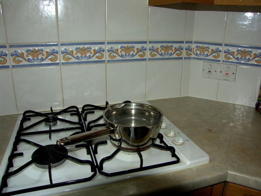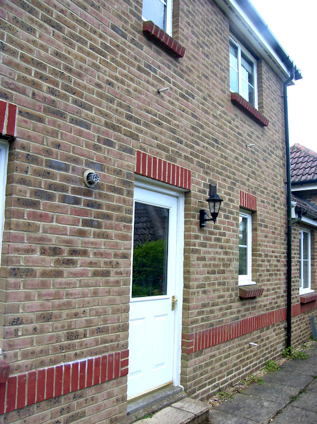 Here, for example, is the door that leads to the back yard. When we first arrived, every time we went outside we would get a drop of water on top of our heads. Didn't notice for quite a while, since it was raining pretty well every day. But it kept on happening even on days when it wasn't raining. Notice the white pipes under the windows. Guess what they are. They are overflow pipes from the toilet tanks. Three bathrooms, three overflow pipes. In North America, and I talked to Kaj, in Sweden, and I suppose anywhere else in the world, the excess water from the tank drains back into the toilet bowl. Not in England. The float in the toilet tank was set too high. As soon as I adjusted the level of the float, it stopped. I guess the English are so used to precipitation, they don't notice a few extra drops on top of their heads. The problem is, when you go through the door, you're never quite sure what it is your feeling, a little "sprinkle" or a little "tinkle". Also, there is no valve, that I have been able to find, to any of the toilets. It seems, you have to shut the main water supply off if there are any problems.