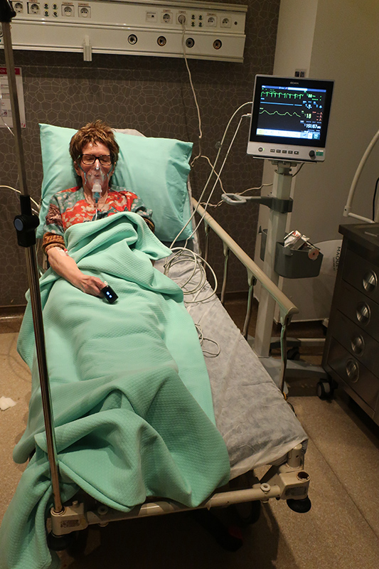 or night, to test her oxygen level, blood pressure and given intravenous
