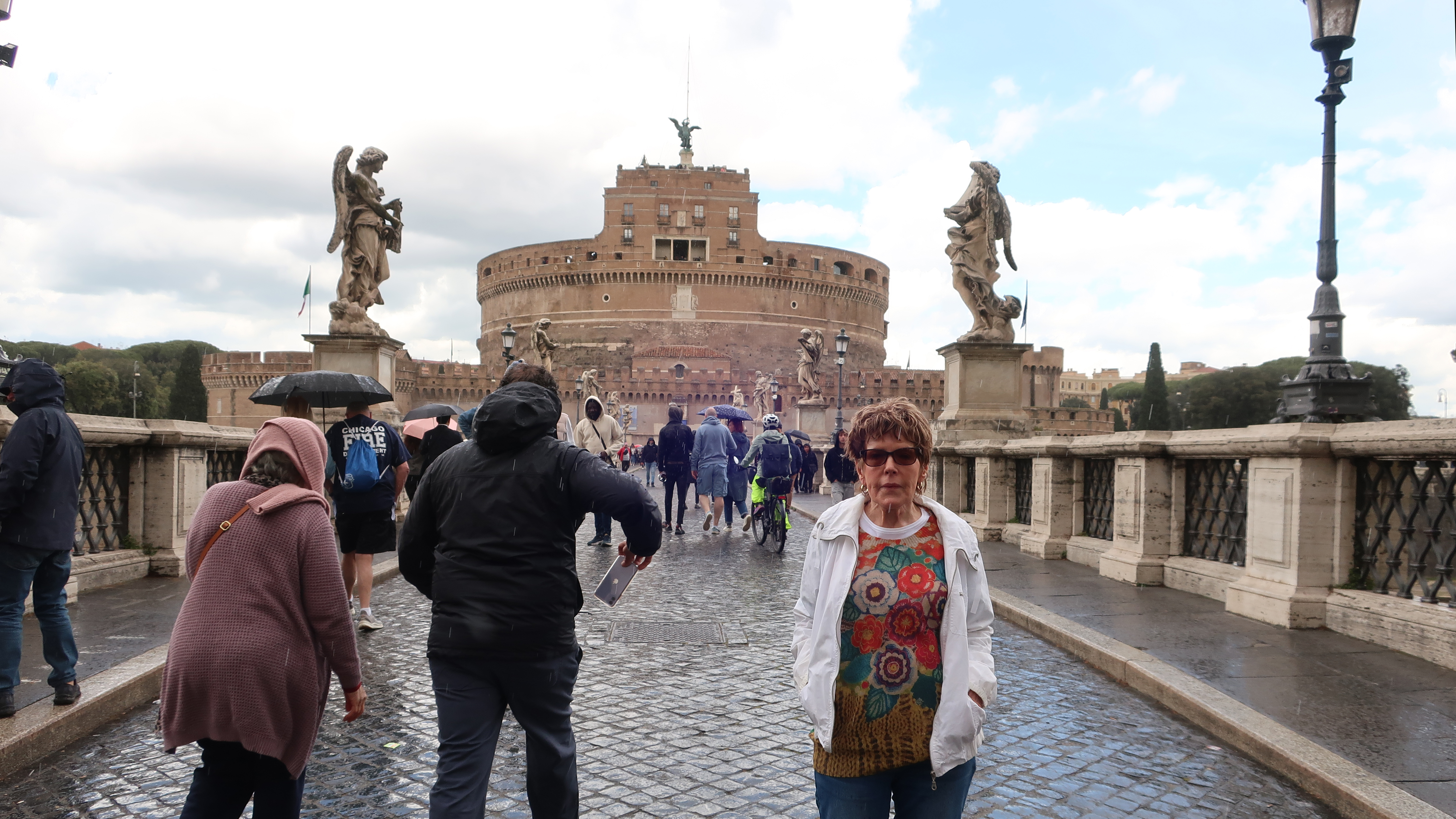 After crossing Ponto Sant'Angelo, we put on our cheap garbage bag